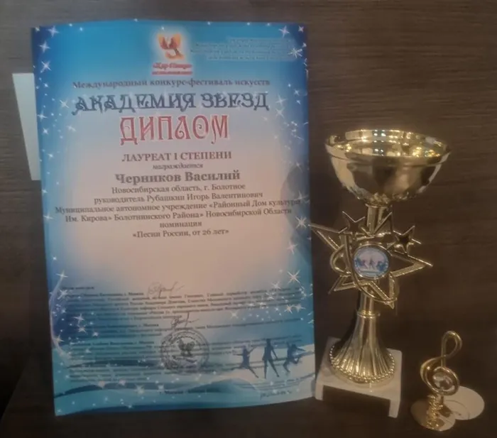 Василий Черников, солист народного вокального ансамбля "Сибирский Сказ" (рук. И. Рубашкин) стал Лауреатом 1 степени на международном конкурсе-фестивале искусств "Академия звёзд" в г. Москве. В номинации "Песни о России" Василий исполнил песню "Родина", покорив как зрителей, так и членов жюри. Хочется отметить, что наш артист-единственный участник, представлявший Сибирский Федеральный округ. Поздравляем Василия с такой высокой заслуженной наградой!