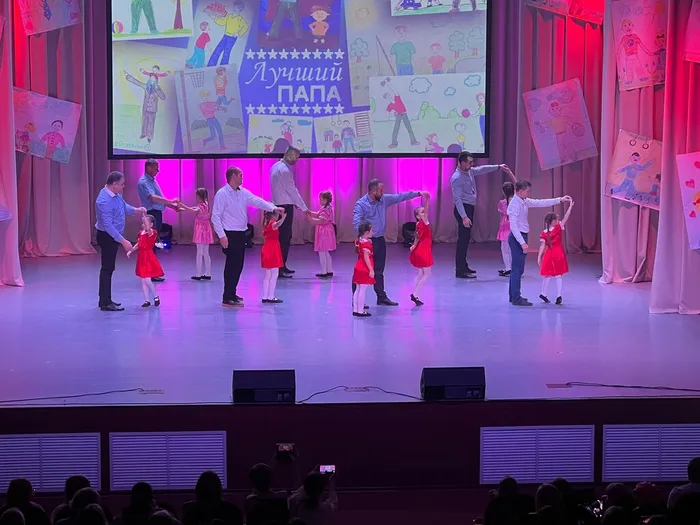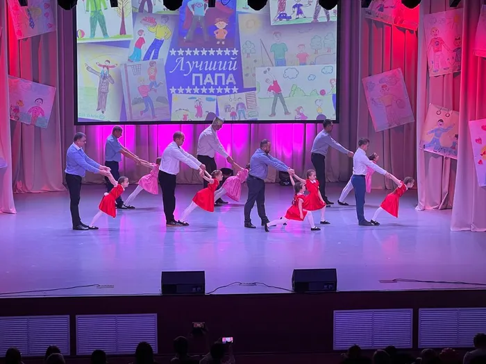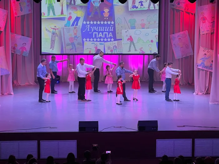 Концерт был наполнен театрализацией, творческими номерами, интерактивами со зрителями, интересными видеороликами про пап, награждением и, конечно же, самым трогательным, танцем пап со своими детьми!
