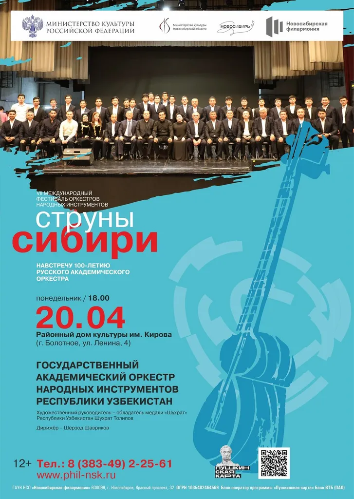 Билеты в кассе РДК и онлайн: https://phil-nsk.ru/afisha/festival-struny-sibiri-den-vtoroy2001262/?date=20.04.2026